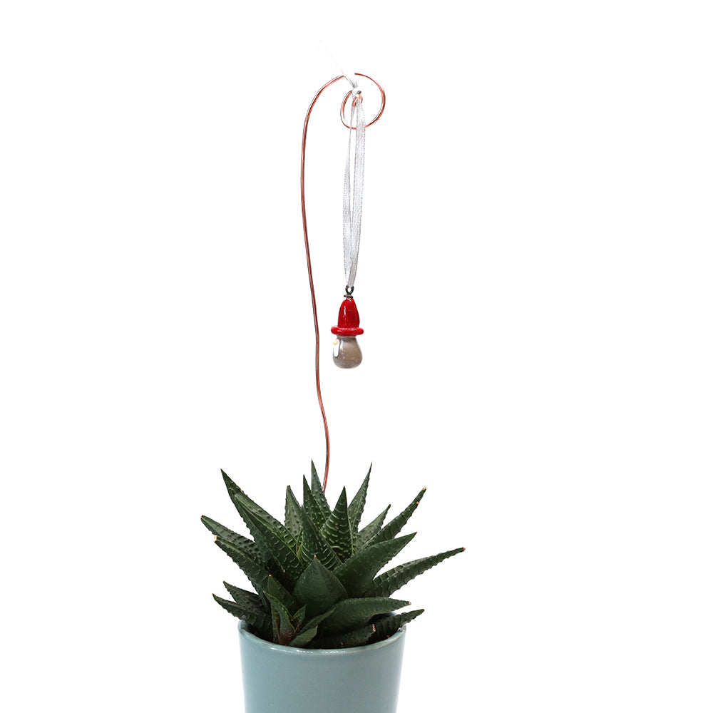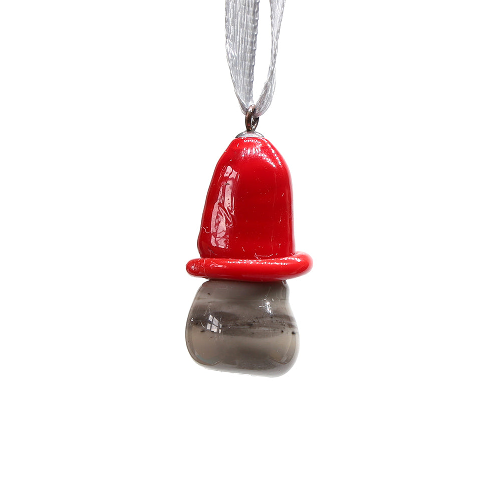 Small but mighty, this jolly gnome wears a red hat, has a snowy white beard, and a tiny pink nose peeking out. A cheerful decoration for festive trees or year-round mischief.
