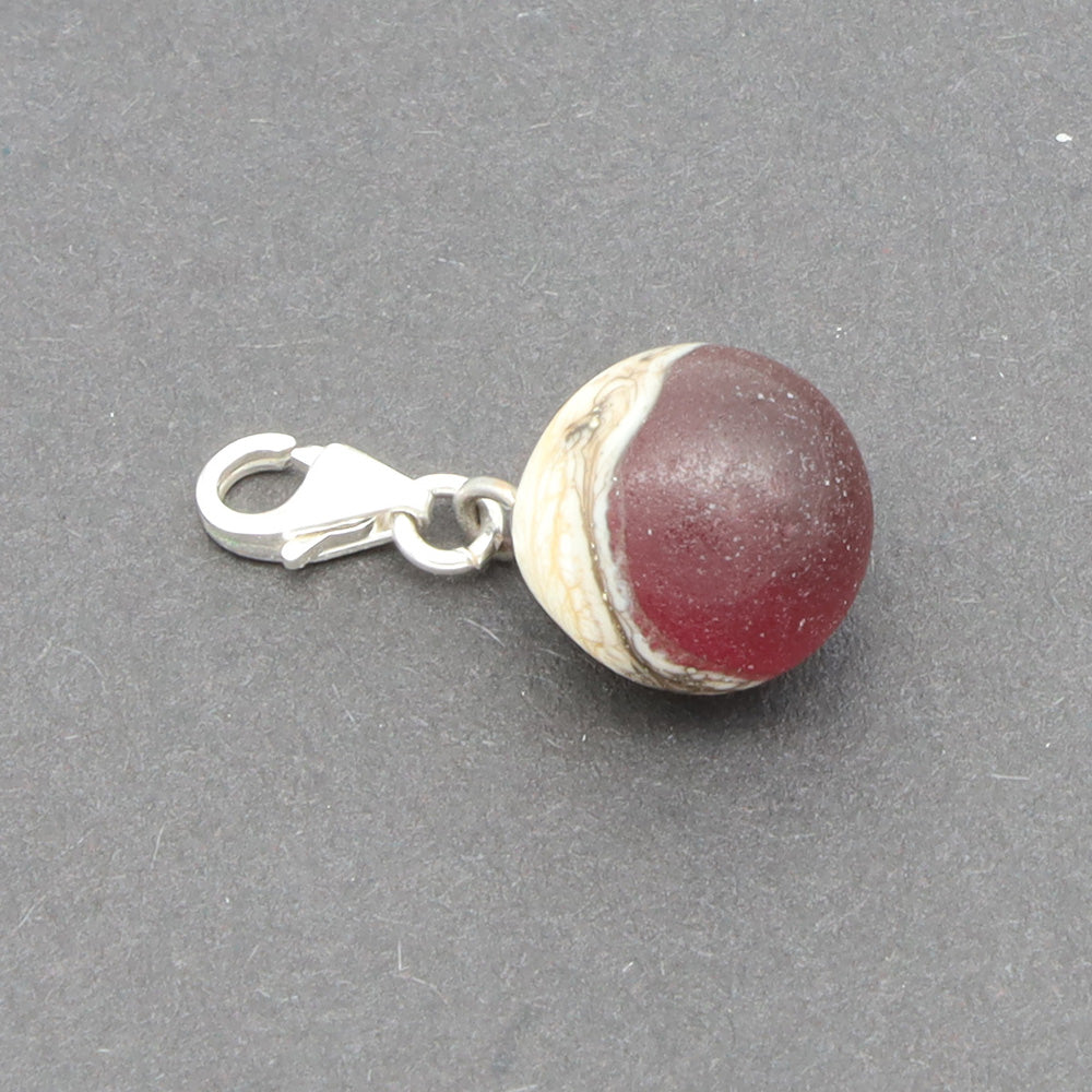 We start by making the glass charms on the ends of the stainless steel posts. This fixes the glass securely without the need for drilling or glue. The charms are then annealed to ensure strength and durability. The frosted finish is created by tumbling the charms in a rock tumbler with sand, grit and water. Finally the charms are cleaned, hung on lobster clasps and packed.