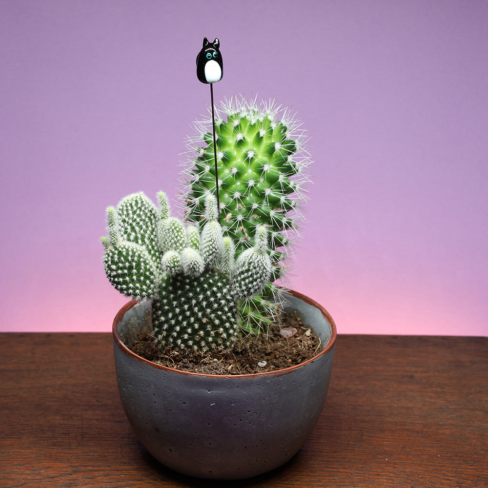 Mounted on a slim stainless steel stake, this cat decoration is easy to pop into your plant pots and stays in place when watering. A fun way to add character to foliage plants, fairy gardens, terrariums, or even display in a bud vase.