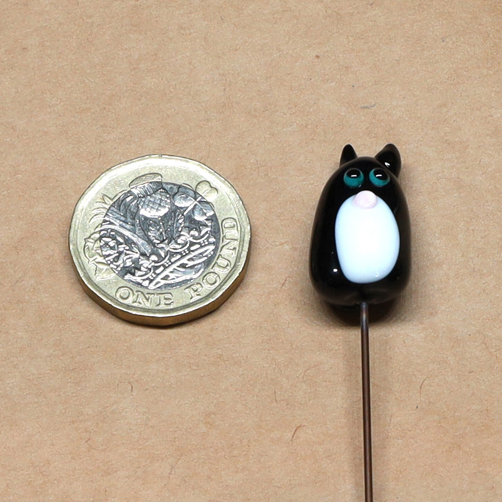 Each cat is individually shaped in our Saltburn-by-the-Sea studio using traditional lampwork techniques. With a shiny black body, white bib, green glass eyes, pink nose and a black tail, every one is a little different.