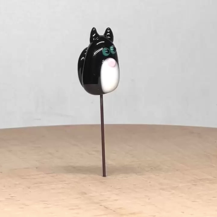Add a little feline mischief to your plants with this handmade black and white cat decoration. With its glossy coat, green eyes and curious expression, this playful cat brings a dash of personality to your houseplants – no shedding required.