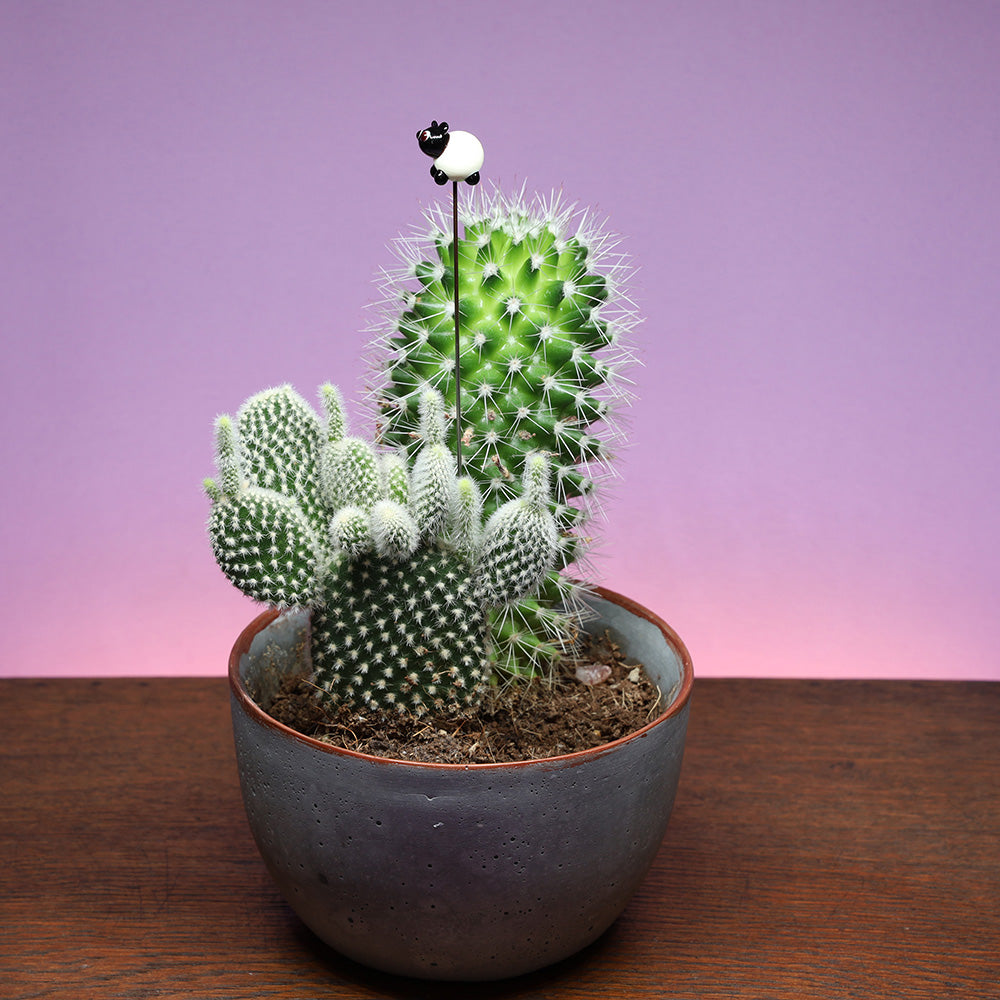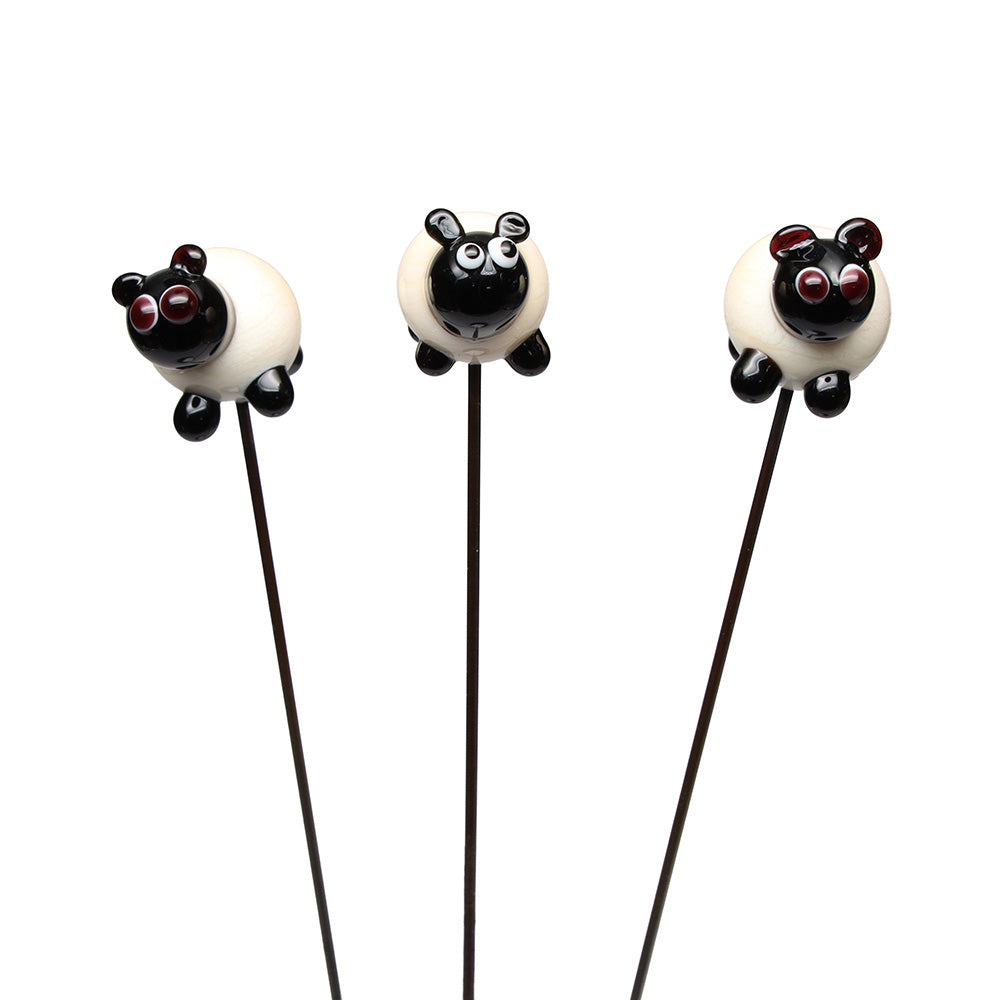 Mounted on a slim stainless steel stake, this sheep sits happily among your houseplants and stays in place when watering. Perfect for adding character to foliage plants, fairy gardens, terrariums, or bud vases.