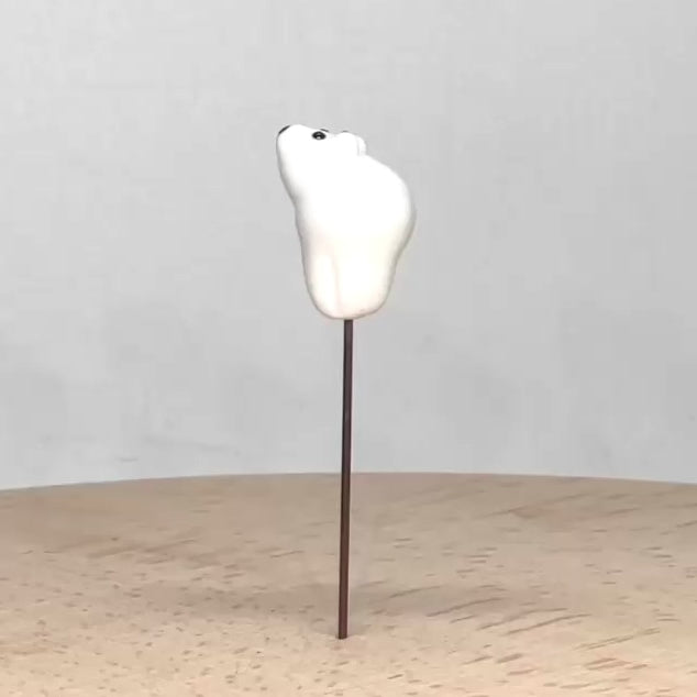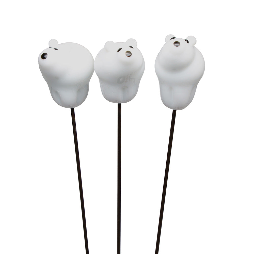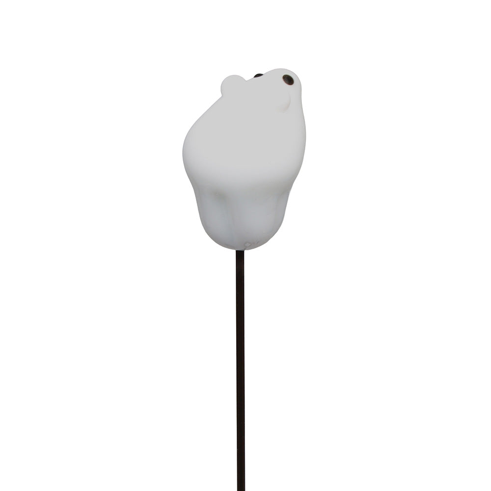 Mounted on a slim stainless steel stake, this polar bear sits happily in your plant pots and stays in place when watering. A charming addition to foliage plants, fairy gardens, terrariums or bud vases.
