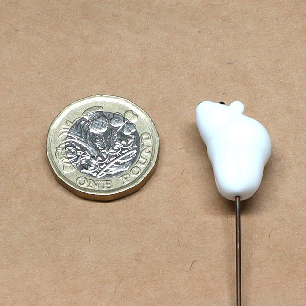 Each polar bear is shaped by hand in our Saltburn-by-the-Sea studio using lampworking techniques. With a smooth white body, beady black eyes and a small black nose, every bear is slightly different and full of personality.