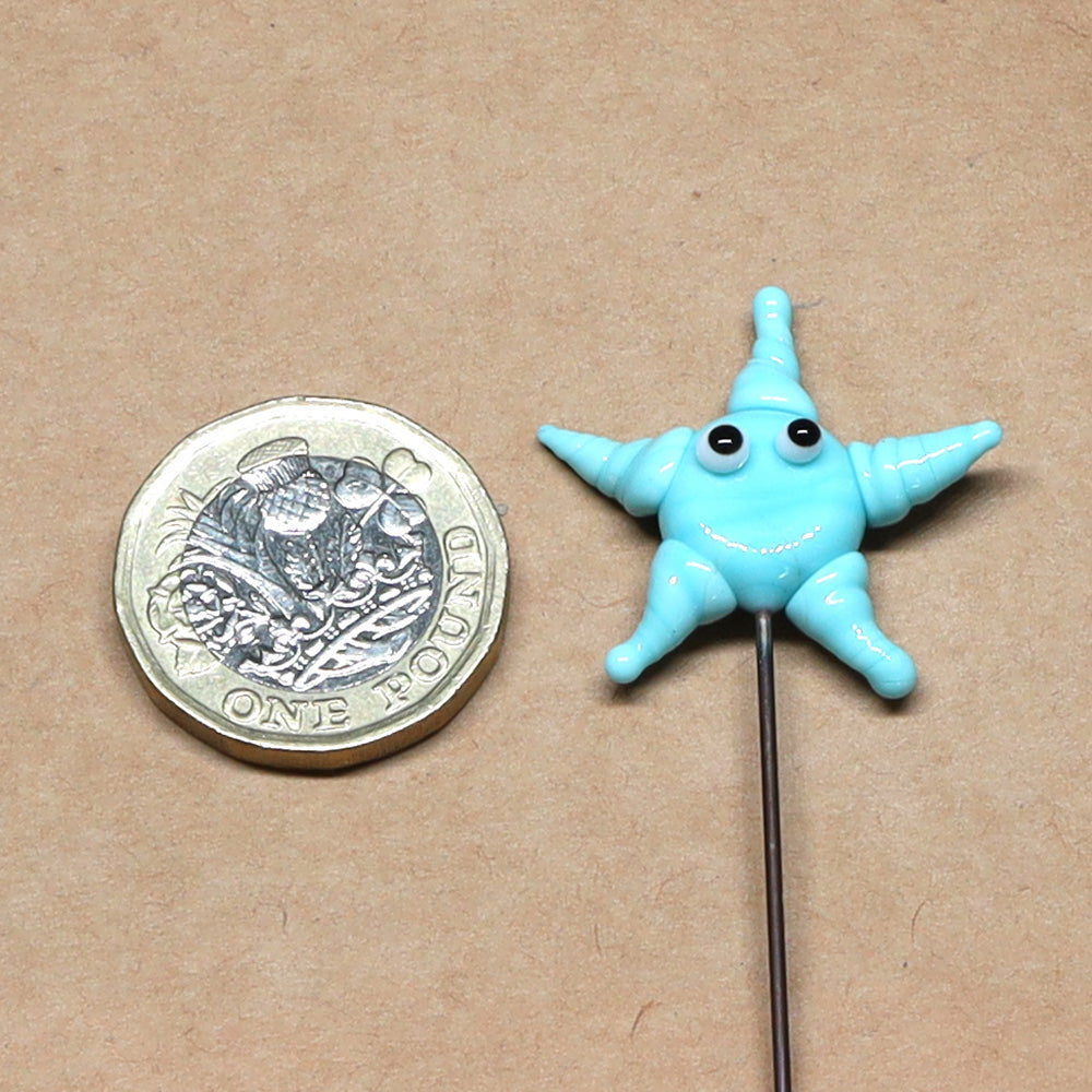 Each starfish is individually shaped in our Saltburn-by-the-Sea studio using lampworking techniques. With its soft turquoise colour and fun googly eyes, every one is full of character and slightly different in shape.