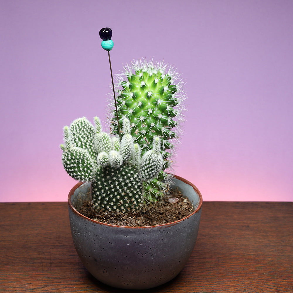 Mounted on a slim stainless steel stake, this thistle decoration is easy to place in plant pots and stays put when watering. A lovely way to brighten up foliage plants, fairy gardens, terrariums or display in a bud vase.