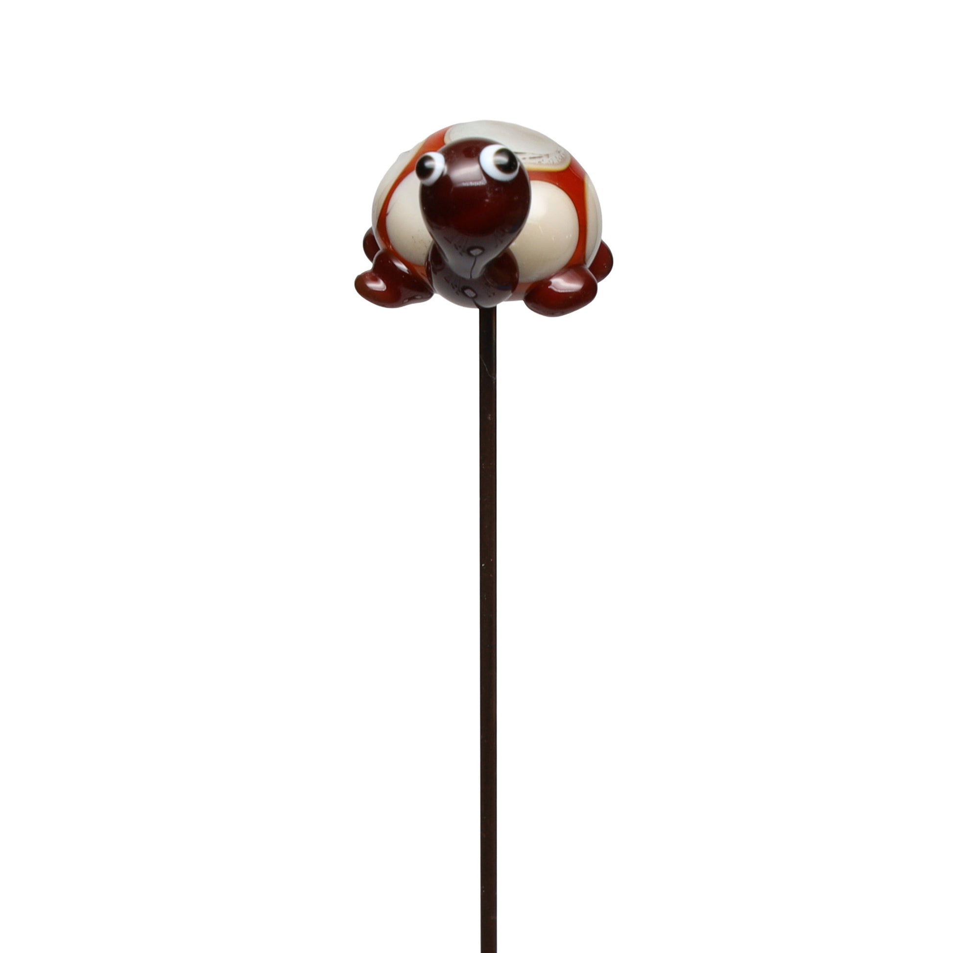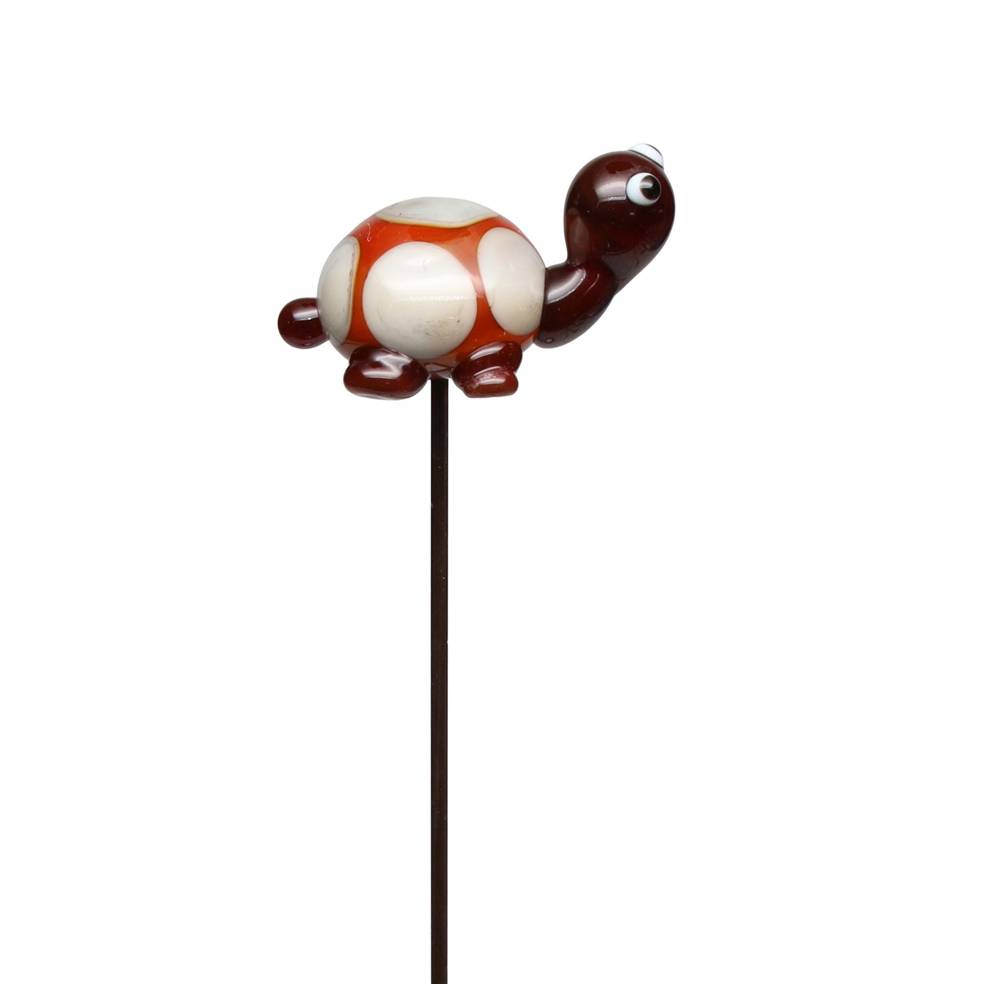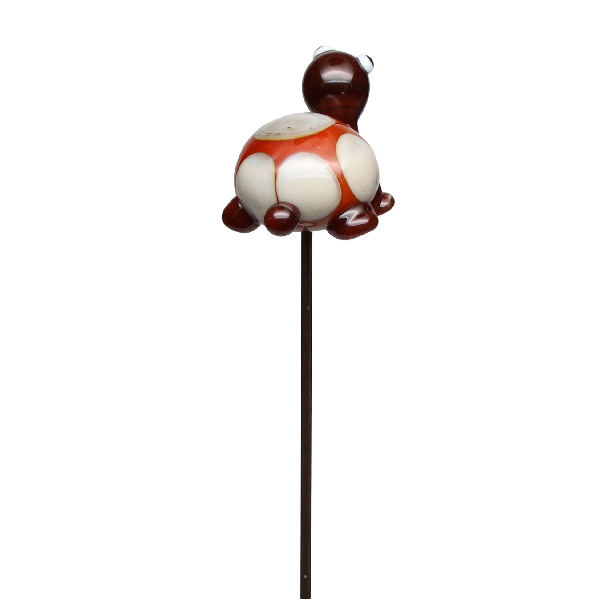 Bring a little slow-and-steady charm to your plants with this handmade glass tortoise. Crafted in warm brown and grey tones, this miniature tortoise brings a playful character to your houseplants.