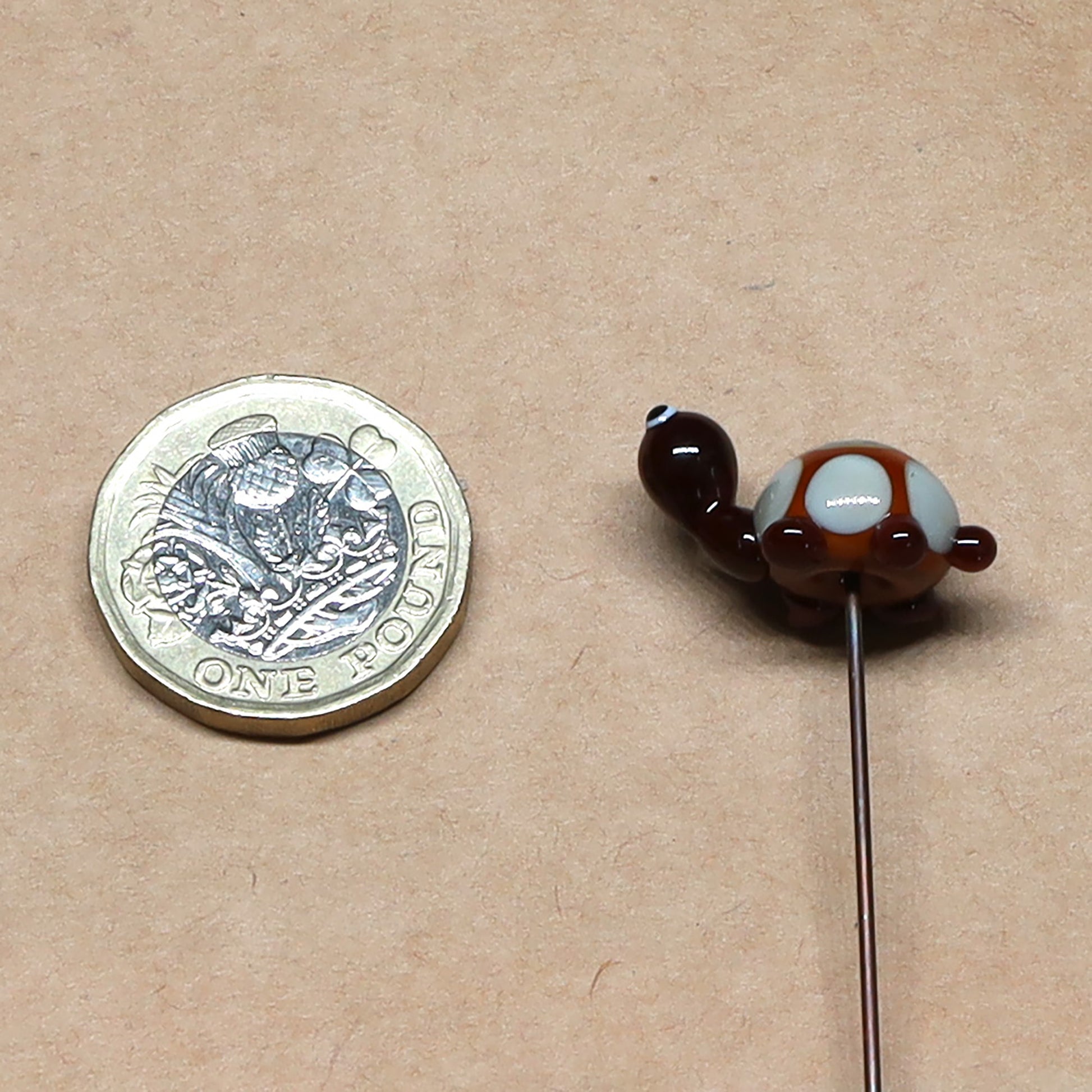 Each glass tortoise is individually made in our Saltburn-by-the-Sea studio using traditional lampworking techniques. With a brown and grey patterned shell, dark brown head and feet, and tiny details, every piece is one of a kind.