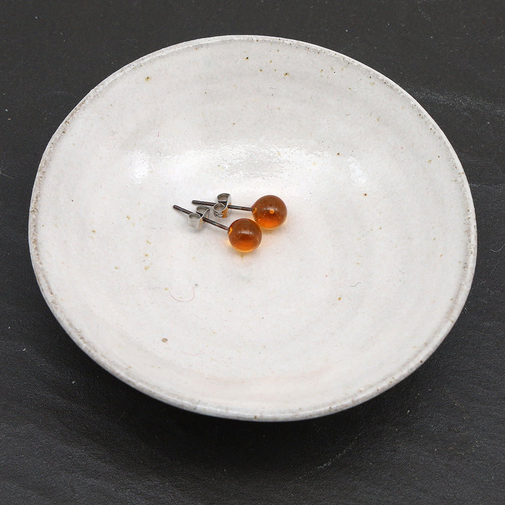Beautiful little balls of transparent shiny yellow glass - perfect for catching the light and making your ears sparkle. Mounted on medical grade stainless steel posts, these are earrings you'll love to wear every day.