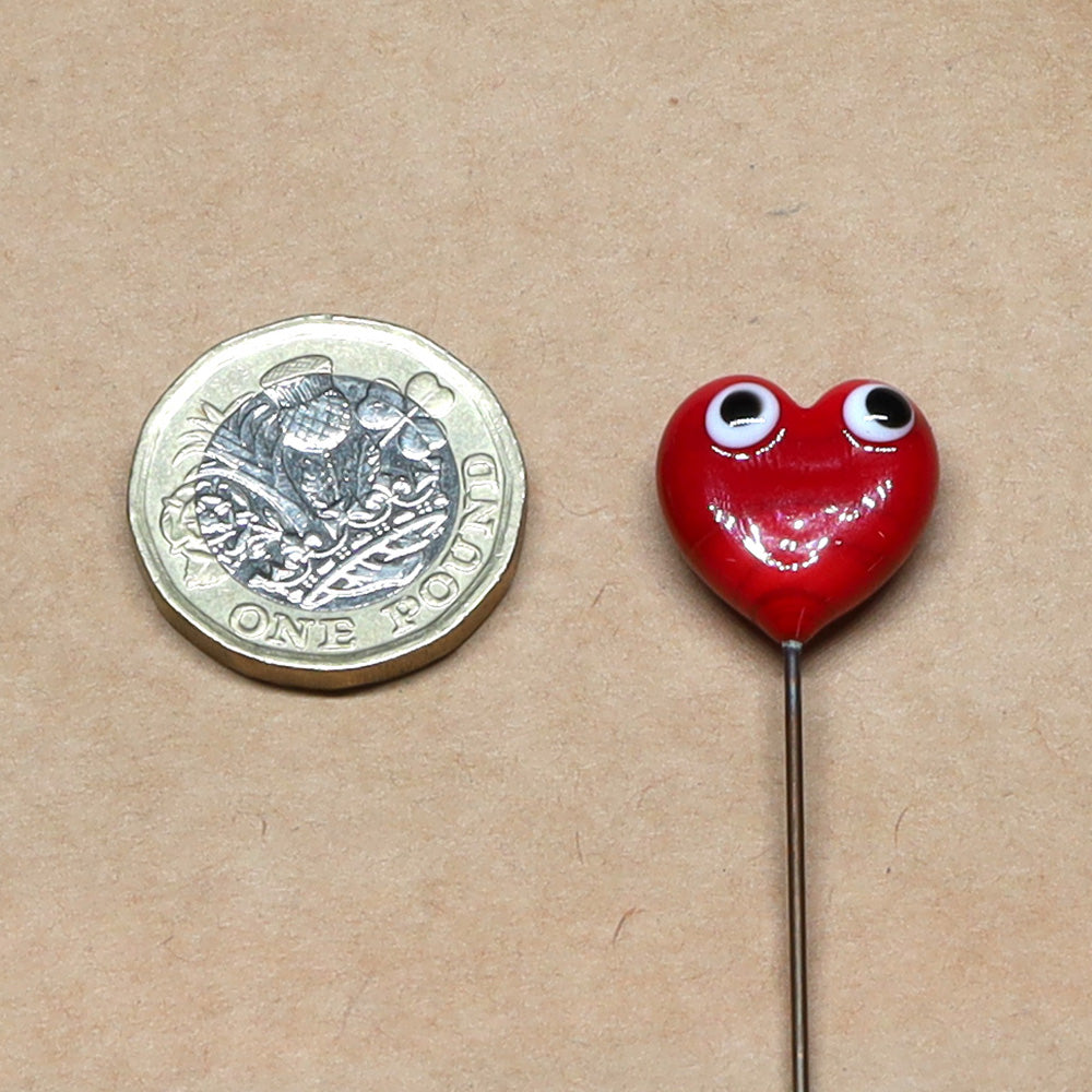 Each heart is individually crafted in our Saltburn-by-the-Sea studio using traditional lampwork techniques. Shaped from opaque red glass with googly eyes on the front and a plain back, every heart is a little bit different.