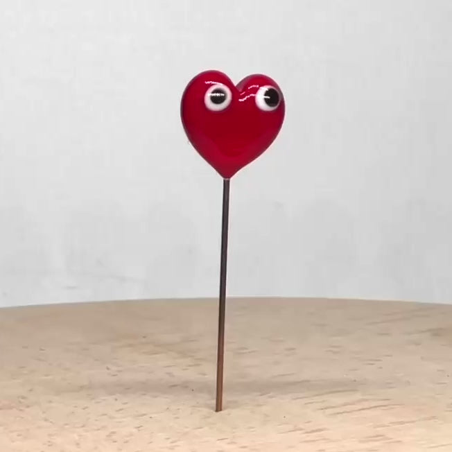 Add a little love (and a cheeky smile) to your plant pots with this handmade red glass heart. Finished with two googly eyes on the front, this playful decoration brings a lighthearted touch to your home.