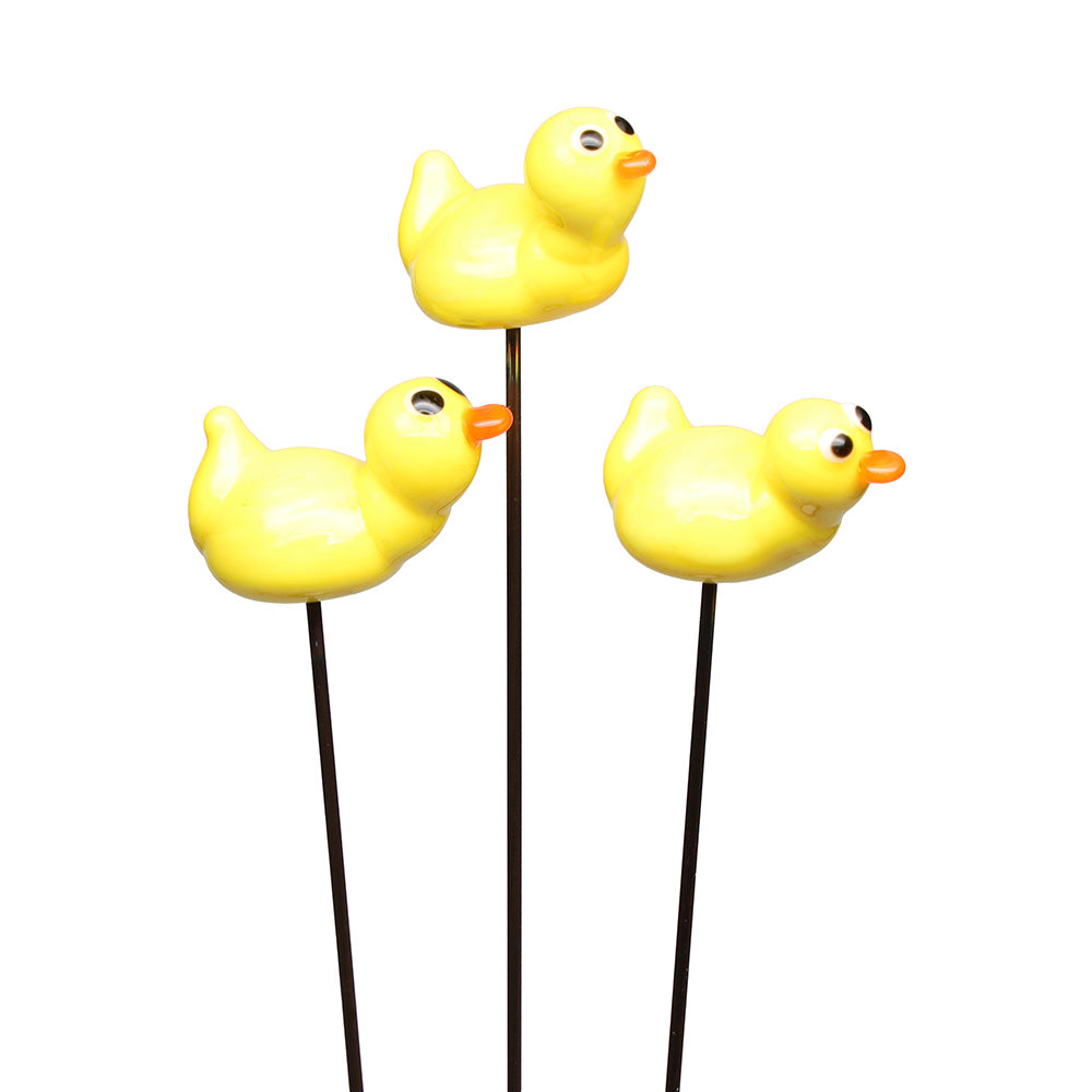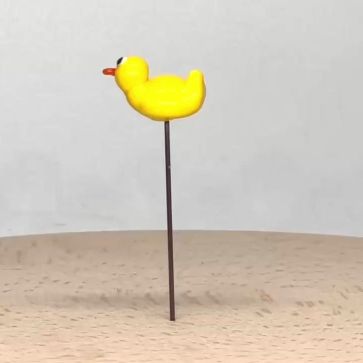 Mounted on a slim stainless steel stake, this duck fits easily into plant pots and stays put when watering. It’s a sweet way to brighten up foliage plants, terrariums, fairy gardens, or bud vases.