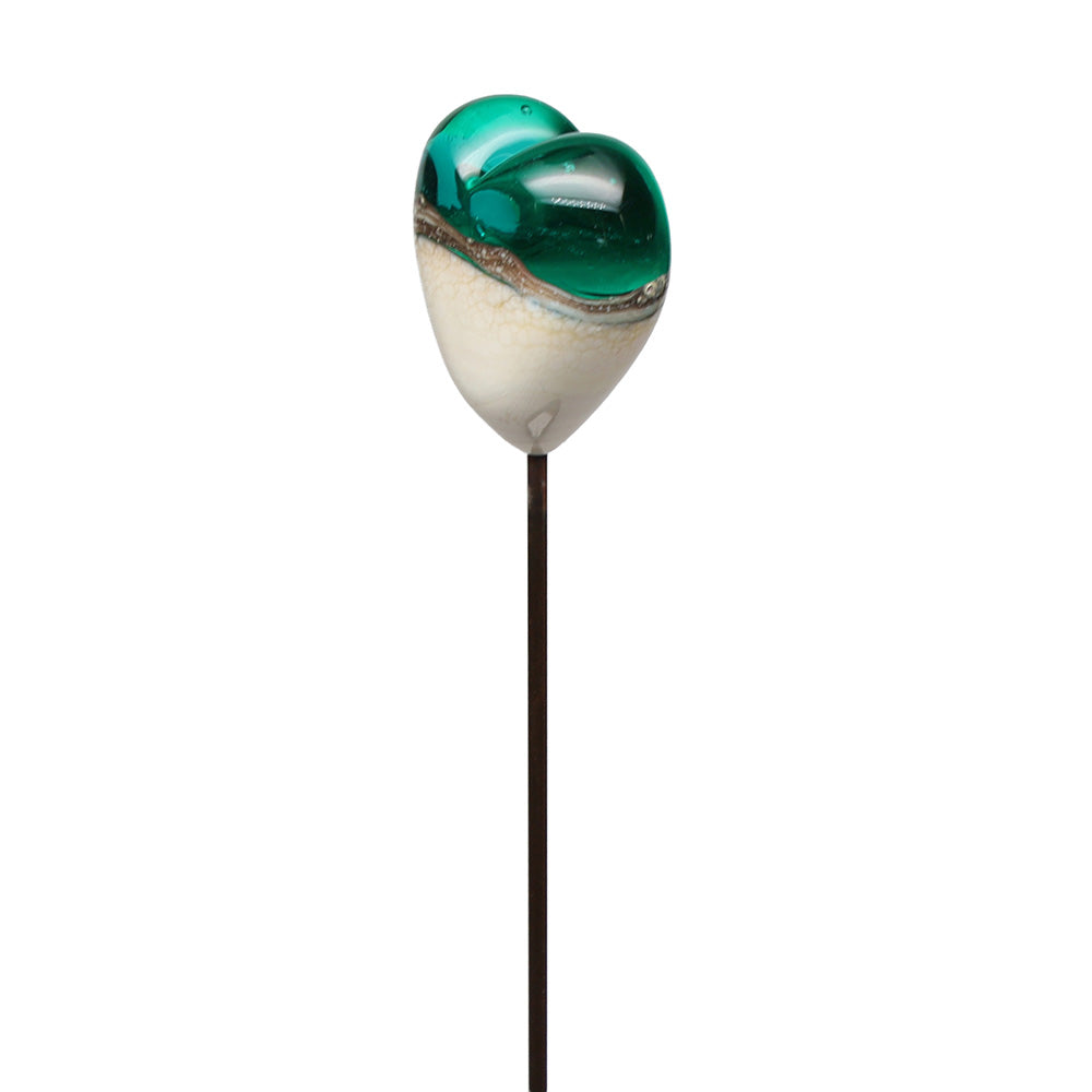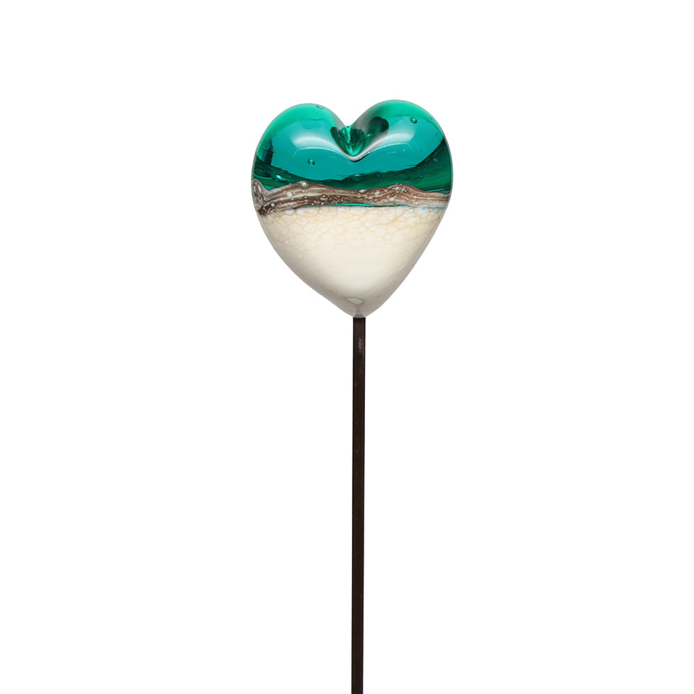 Bring a little coastal charm to your plants with this handmade glass heart. Made from ivory and transparent teal glass, with a swirling silvered ivory detail, this decoration is inspired by crashing waves and salty sea breezes.