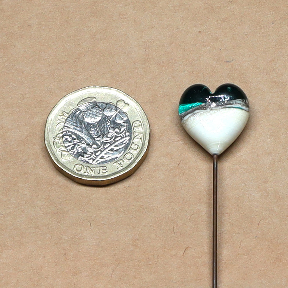 Each seaside heart is individually shaped in our Saltburn-by-the-Sea studio using lampwork glass techniques. Layers of ivory and teal glass are finished with a swirl of silvered ivory, creating subtle textures and tones. Every piece is a little different.