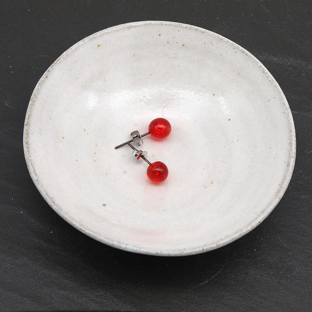 Glass makes beautiful earrings which are light weight and easy to wear. Choose from statement hoops, and delicate studs in a rainbow of colours