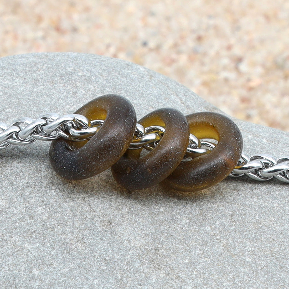 Bracelet with 3 Frosted Marmite Jar Glass Beads