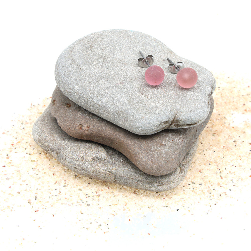 Earrings made with little balls of frosted transparent pink medical grade stainless steel posts, these are earrings you'll love to wear every day.