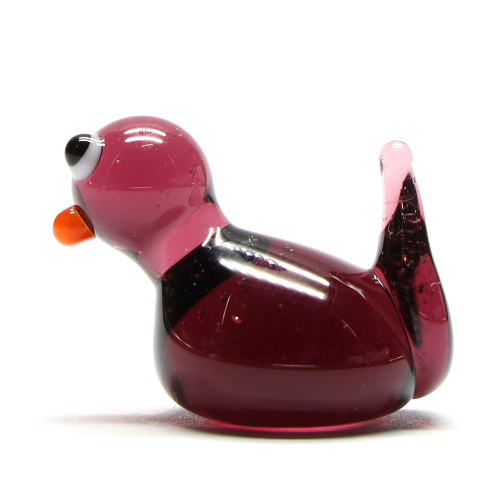 A purple glass duck - rich and expressive, with a jewel-like quality.