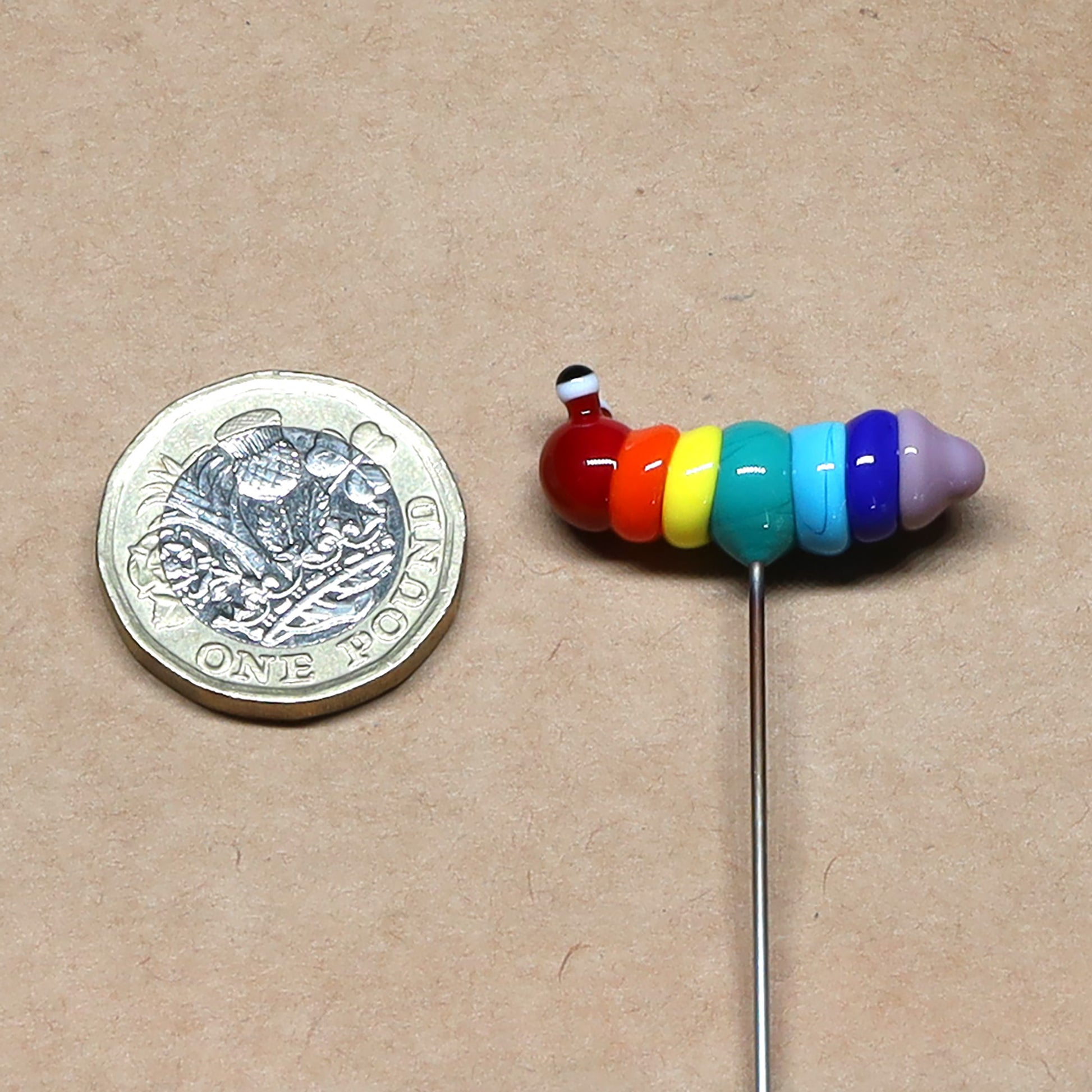 Each caterpillar is individually crafted in our Saltburn-by-the-Sea studio using lampwork glass techniques. Made from a rainbow of coloured glass beads, no two caterpillars are exactly alike – every one has its own quirky charm.