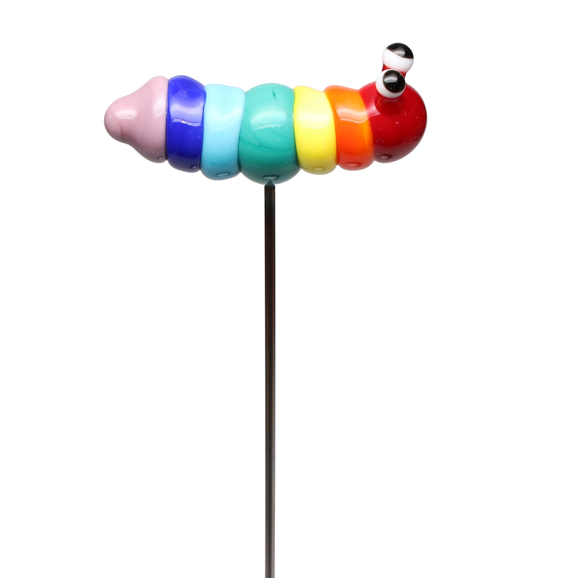 This listing is for one rainbow caterpillar decoration on a plant stake.