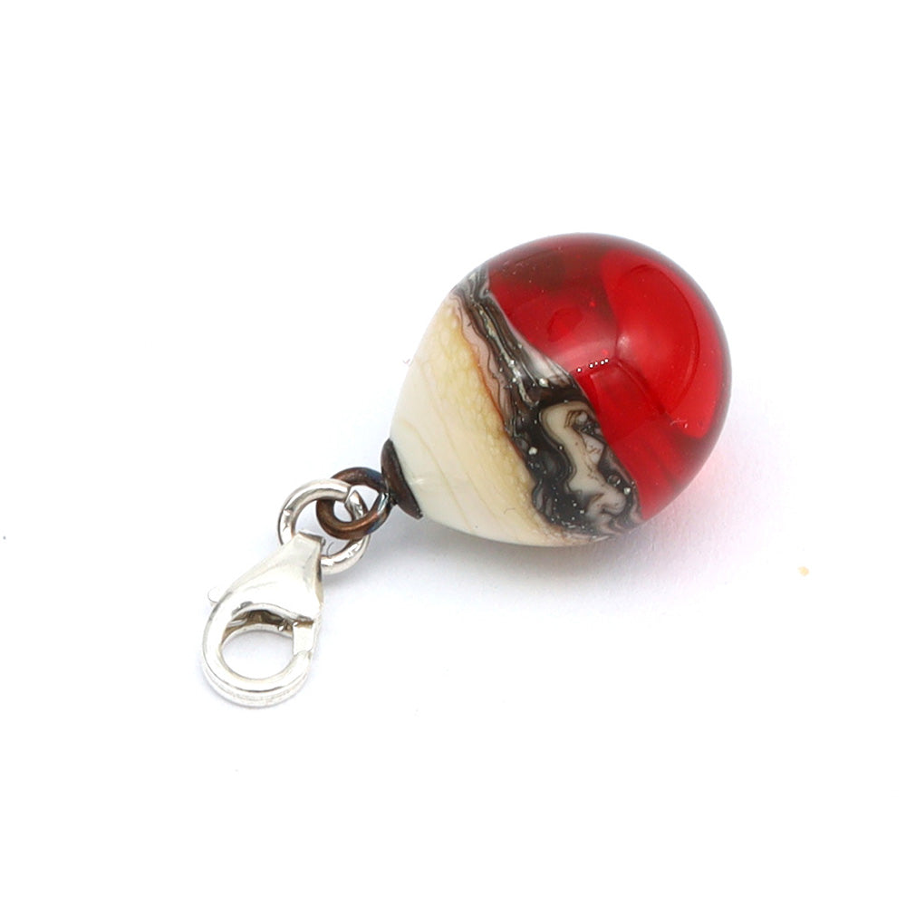 The beads are made from soda lime (soft) glass and fine silver which is melted onto small stainless steel hooks.