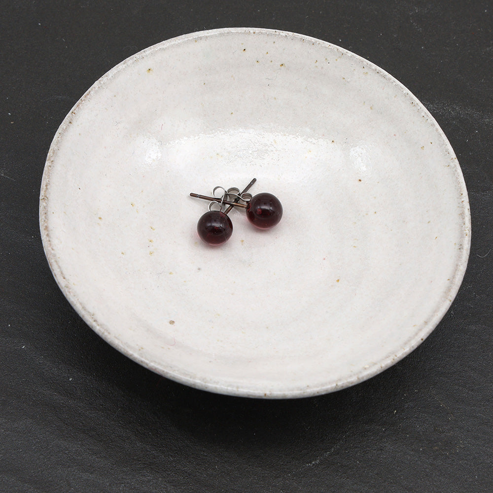 Beautiful little balls of transparent shiny purple glass - perfect for catching the light and making your ears sparkle. Mounted on medical grade stainless steel posts, these are earrings you'll love to wear every day.