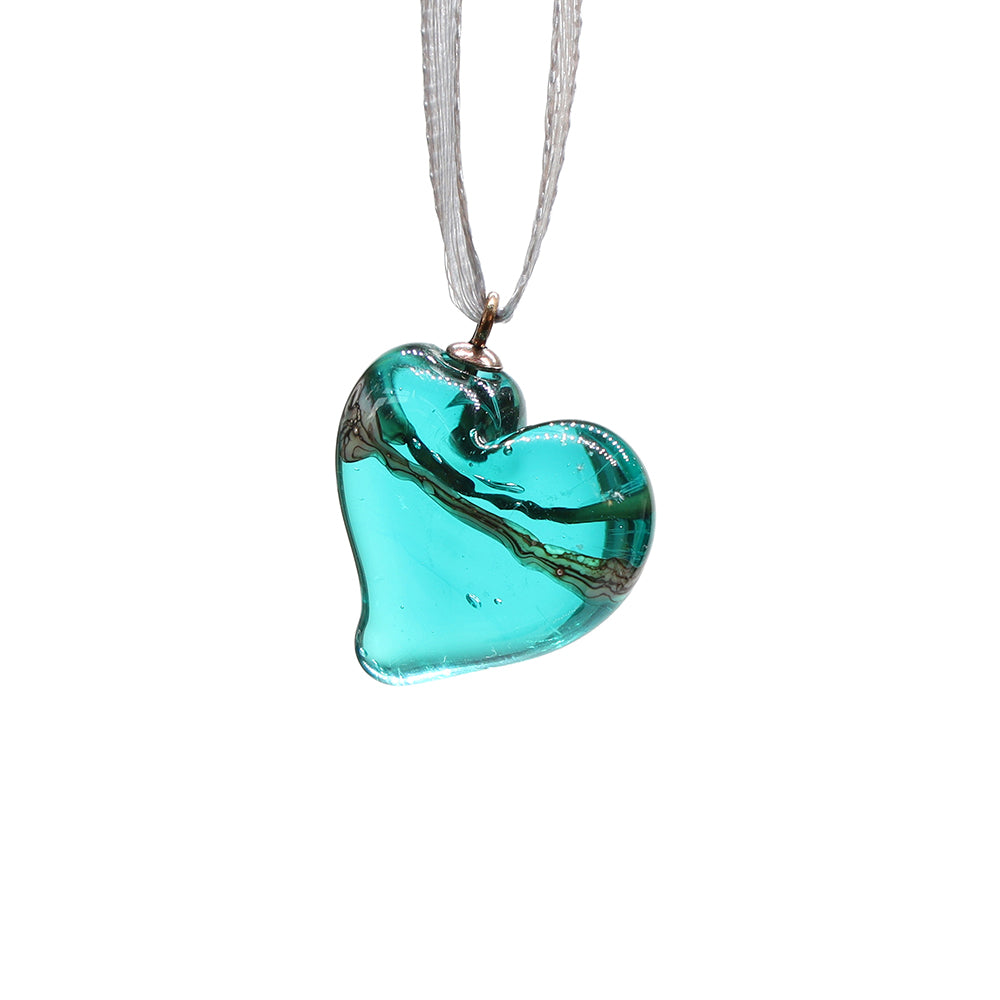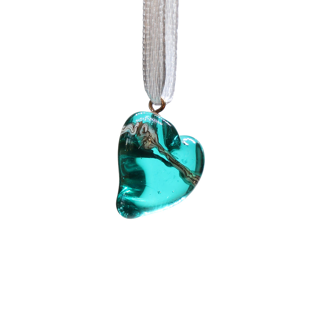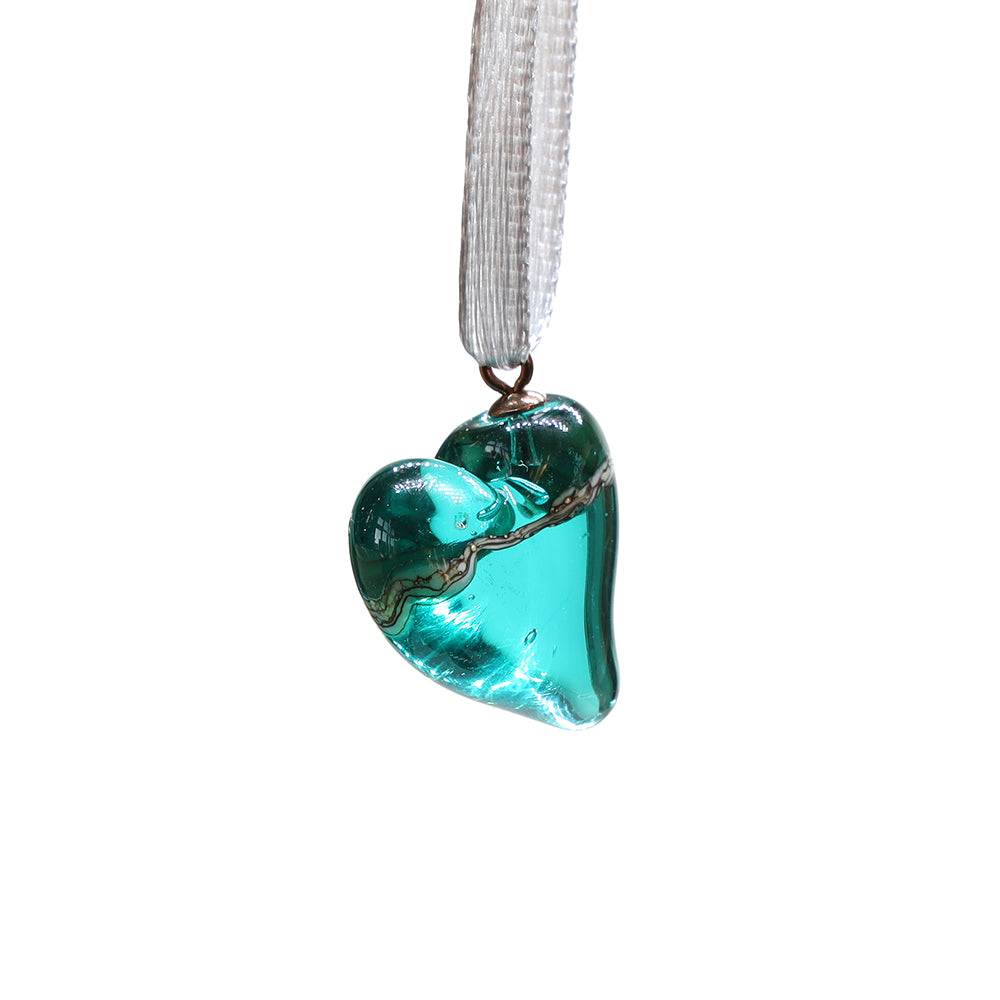 Inspired by the coast, this heart is made from transparent teal glass with a swirl of silvered ivory running through it – like waves meeting the shore. A lovely way to bring a little beachside calm into your home, whatever the season.