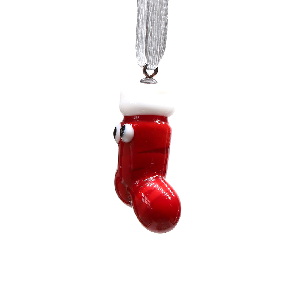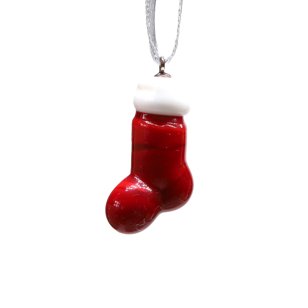 Tiny Glass Christmas Stocking Hanging Decoration