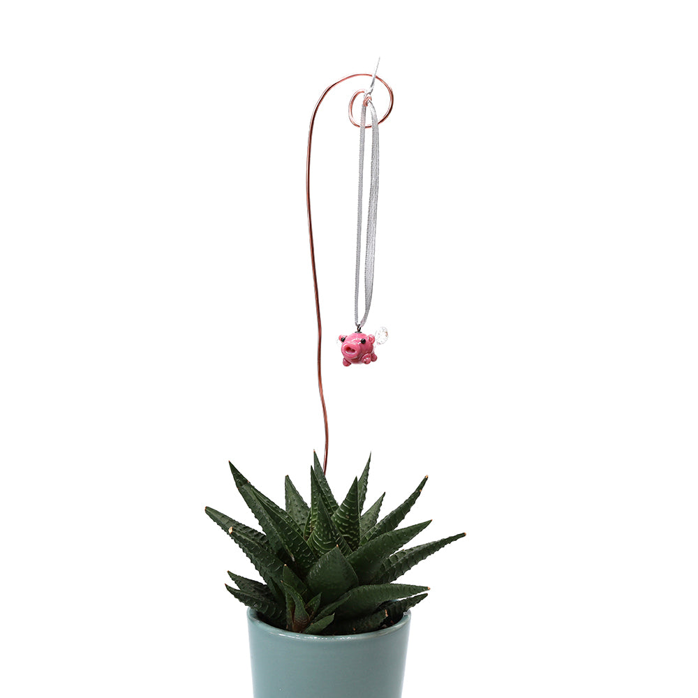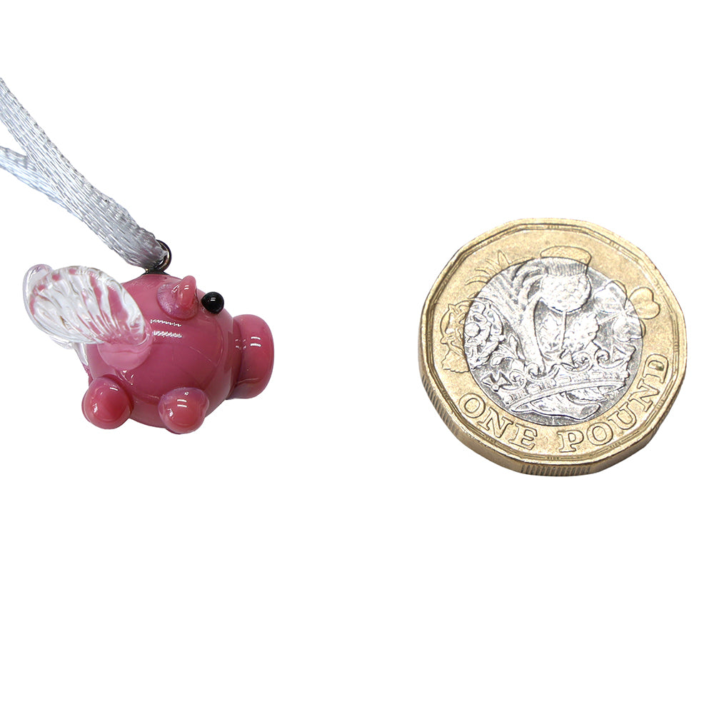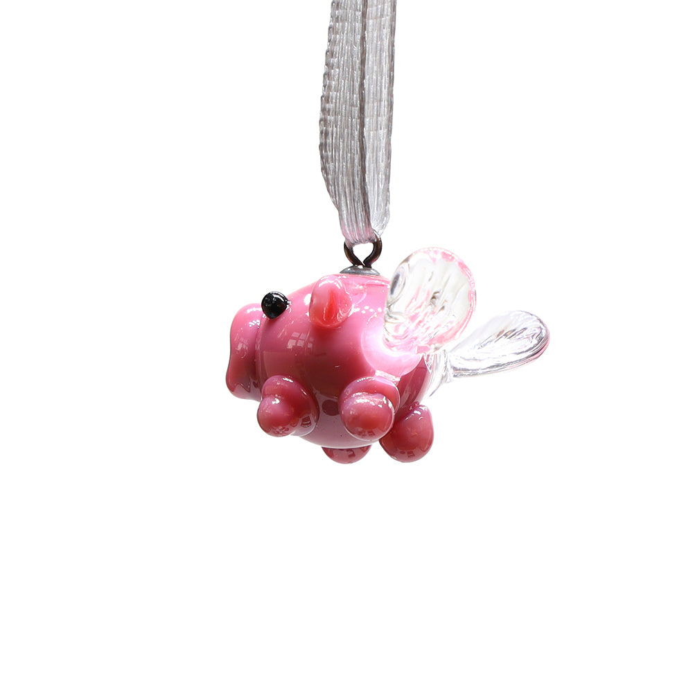A flying pig! Well, almost. This sweet little pink pig has black eyes and tiny clear wings. Fun, unexpected and guaranteed to make you smile.