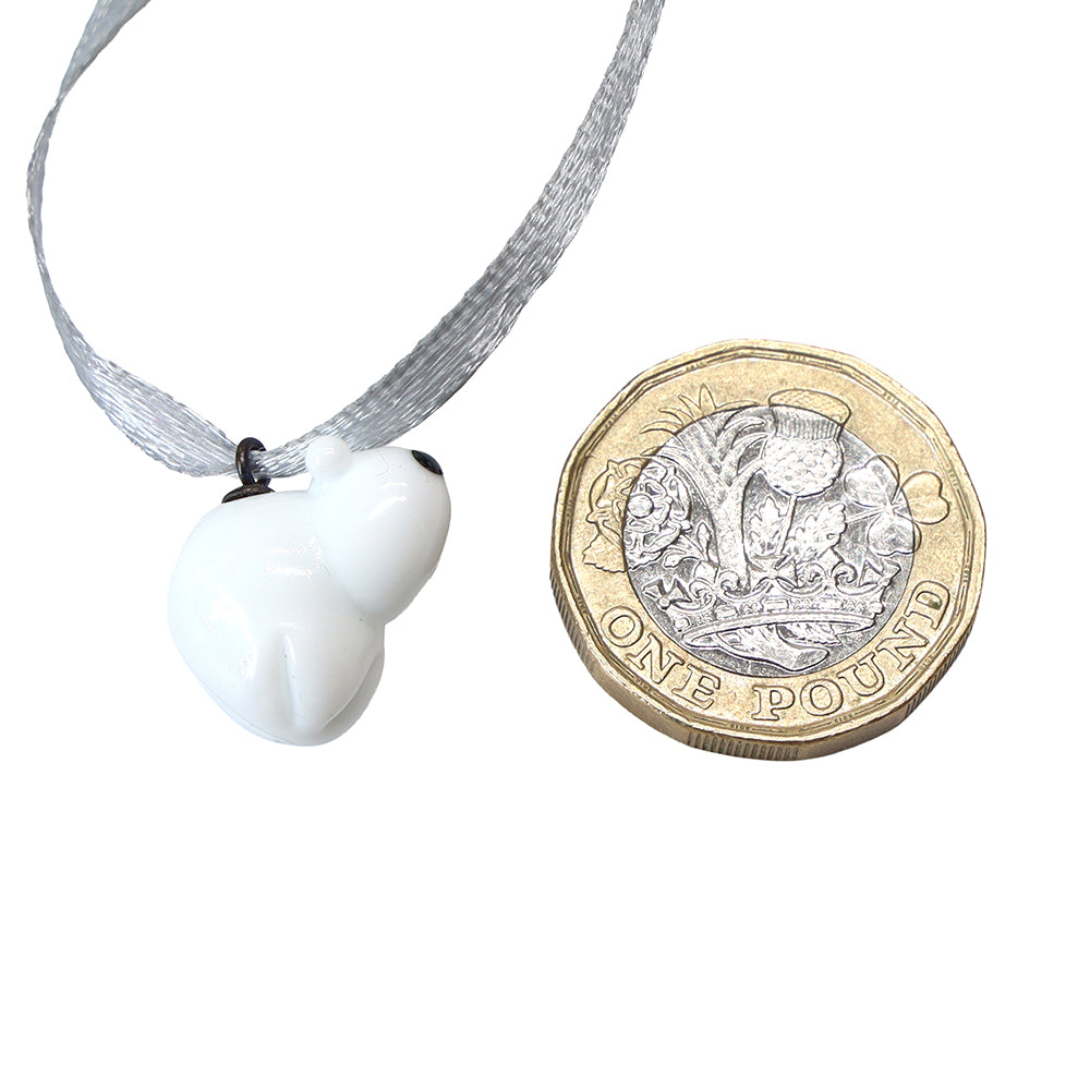 A sweet and simple design with just the right amount of wintry charm. This little polar bear is made from glossy white glass with a tiny black nose – perfect for snowy scenes and cosy corners.