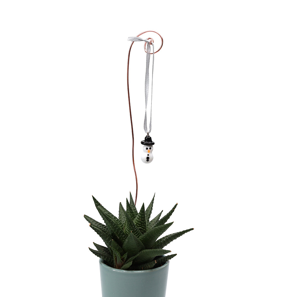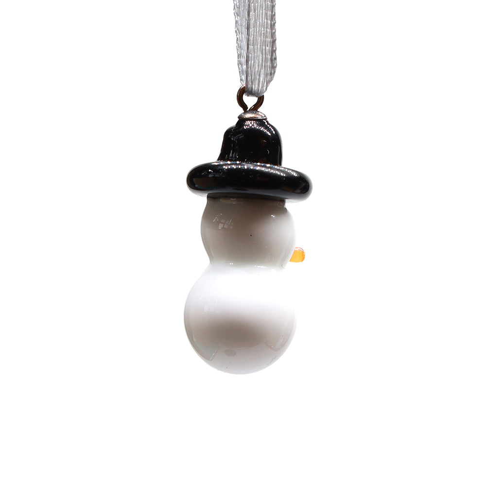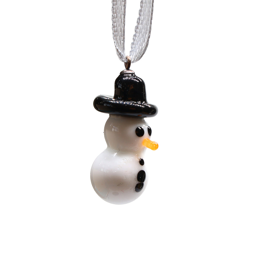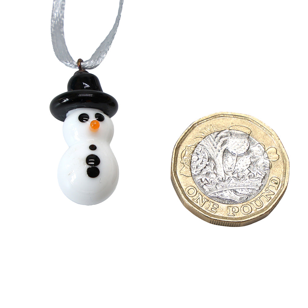 A frosty favourite, this snowman has a black hat, white body, carrot nose and dot buttons. A sweet traditional decoration with a handmade twist.